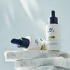 キャップを回してスポイトを取り外し、顔に塗布します。顔の内側から外側へ肌のキメに沿って馴染ませてください。