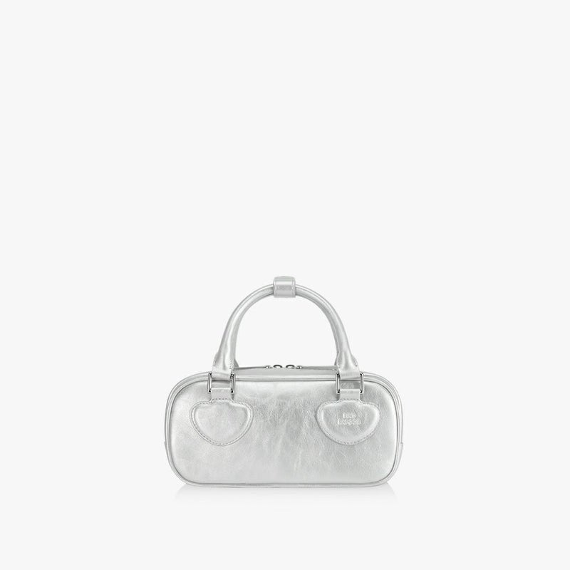 ハートデザインのユニークなトートハンドルが強調された、
